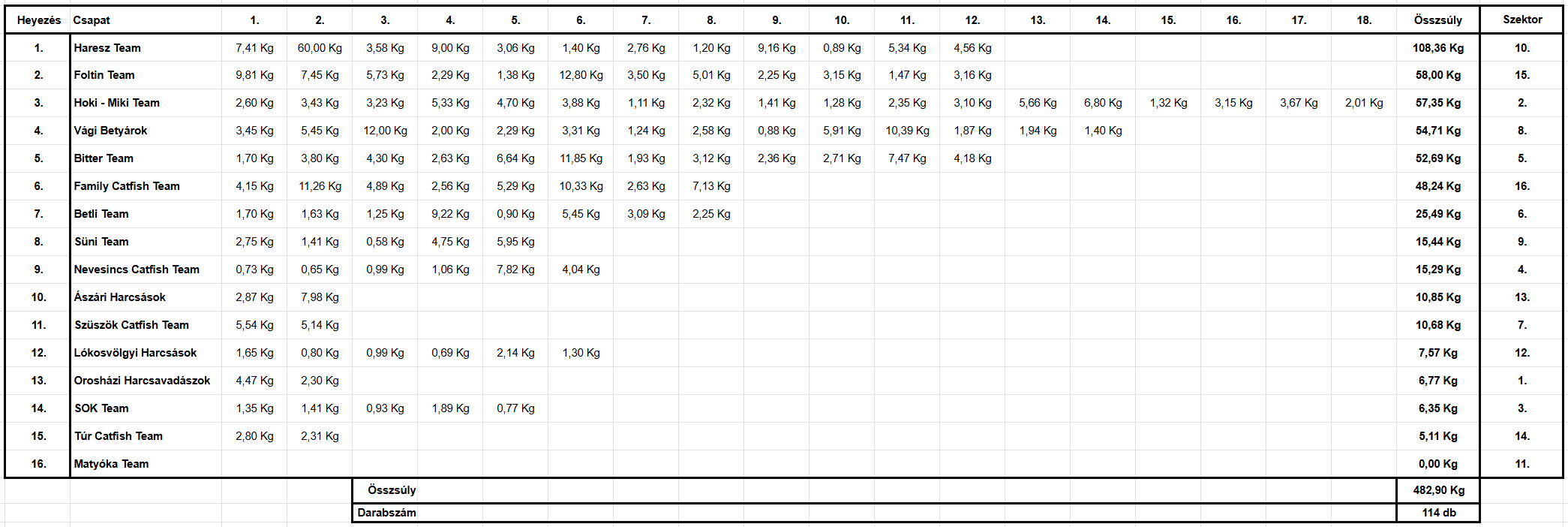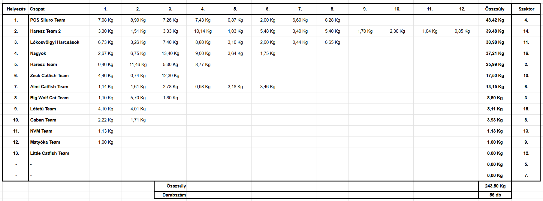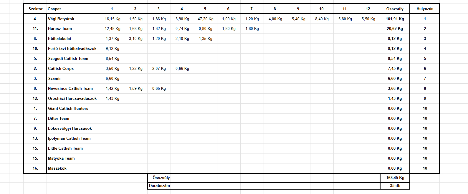 összfogással, amelybe a 100+ kilós kapitális példányok nem számítanak bele, hiszen azok nem versenyek során kerültek partra.